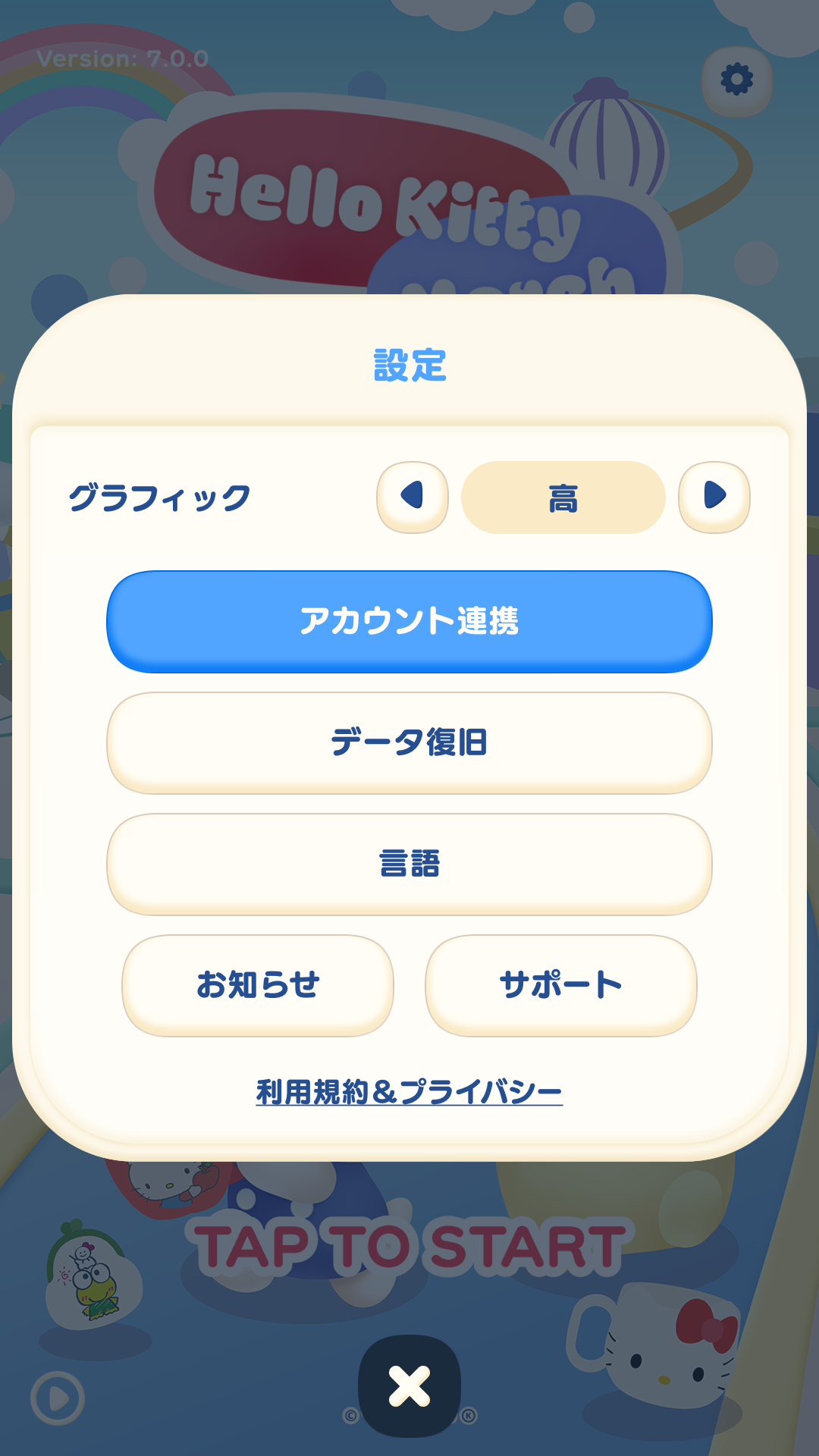 「アカウント連携」ボタンから行うことで可能となります。連携した情報をご使用したいデバイスで入力することで、データを引き継いでプレイができます。